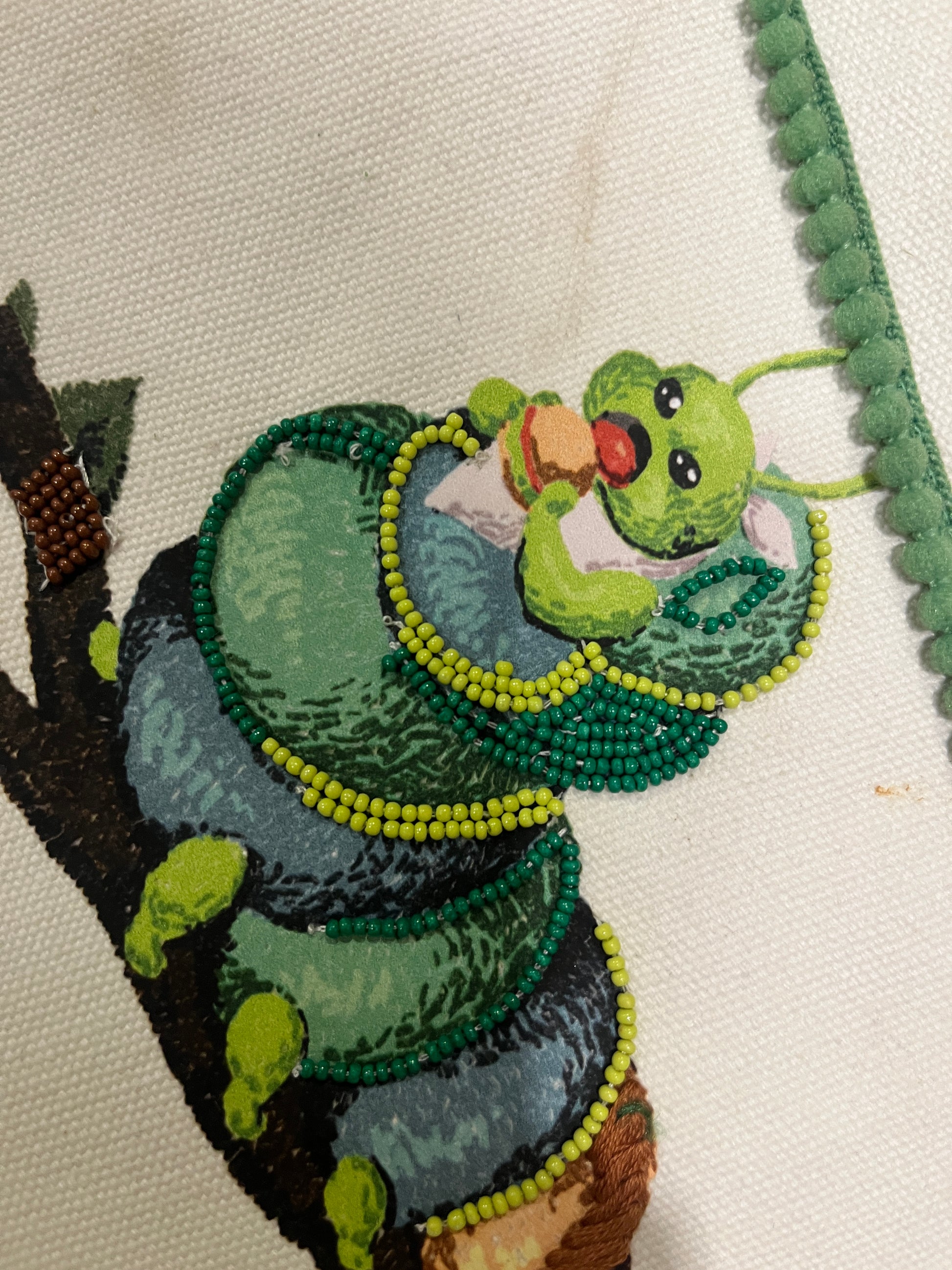 caterpillar printed & hand embroidered utility pouch.